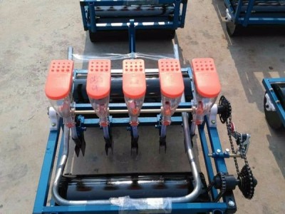 我厂生产的人力播种机可以与微耕机配套使用,有两行、四行、六行三个规格,可播种谷子、萝卜、白菜、油菜等小粒蔬菜种子、东北地区可用于播种中药材等。采用精密结构播种盒,防静电播种轮,种子施播均匀,无漏种现象;加强一体机架,链条隐藏式设计,外型美观;人机公用结构设计,使用方便,增加买点;采用种盒可360度旋转式设计,剩余种子轻松倒出。