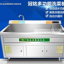 特设的臭氧发生装置,在洗涤蔬菜和水果的过程中连续产生并输送臭氧,经过布气装置,与水和洗涤物充分接触,达到杀菌消毒的目的 。