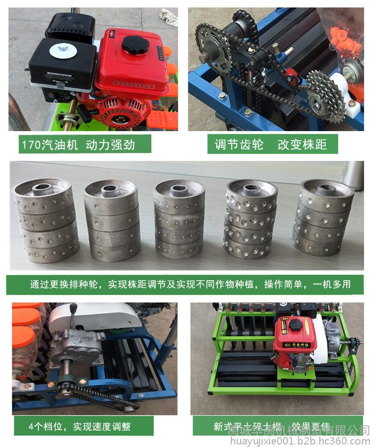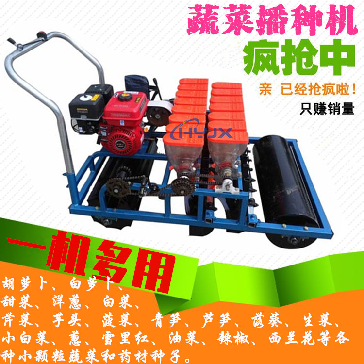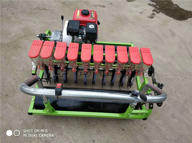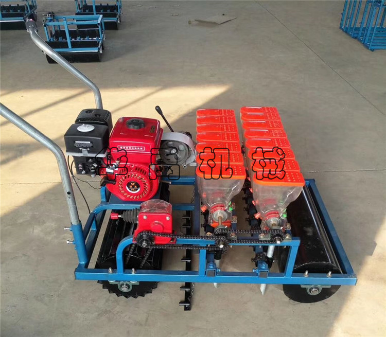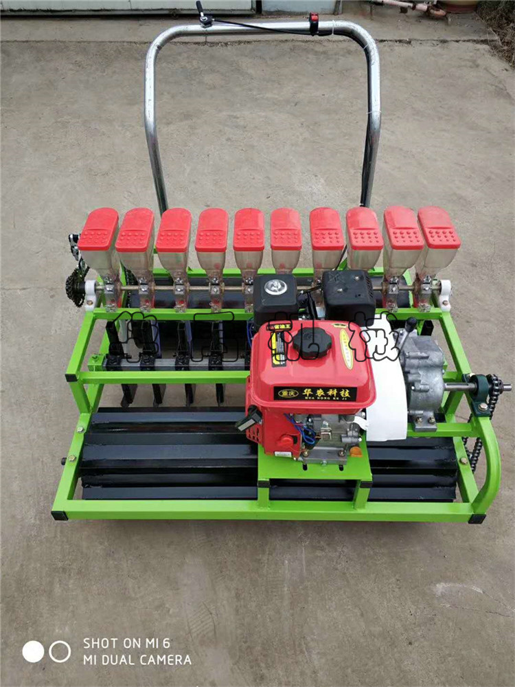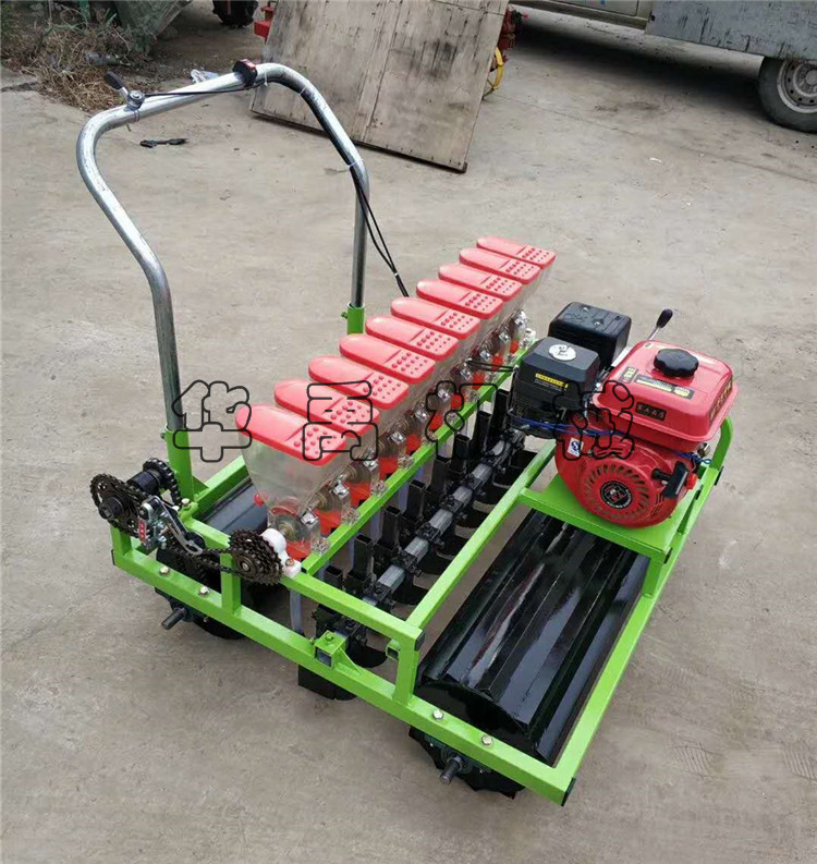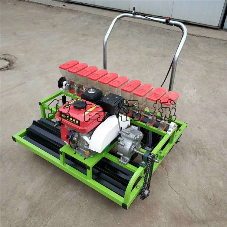 ①本机配8马力汽油机为动力,保证动力强劲。 ②变速调节,多档可选,使用方便。 ③后驱动力,动力更强,不易打滑。 ④株距、行距、深度随意调节。 ⑤排种可做到一穴一粒,准确度99%。 ⑥适用于所有小粒的蔬菜、花卉、谷物、中药的精播种。