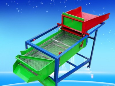 该精选筛为二层筛网,先经过进料口处风机抽风,直接抽走重量轻的杂叶或麦秸秆,上层筛的初次筛分再把大杂清理过,好的粮食(种子)直接落到下层筛网上,下层筛网会把粮食(种子)中的小杂.小石子.有缺陷的粮食(种子)直接漏掉,完好的粮食(种子)会从出料口筛分出来。该小型清粮机解决了扬场机的功能单一,不能有效去除石子.土块的缺陷,更能为清理、净选粮食(种子)带来满意的效果。该机有小,方便,便以,除尘除杂效率明显,能耗低,使用简便等优点。真可谓是中小型粮食清理净选筛中的战斗机!