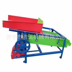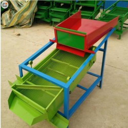 该精选筛为二层筛网,先经过进料口处风机吹风,直接吹走重量轻的杂叶或麦秸秆,上层筛的初次筛分再把大杂清理过,好的粮食(种子)直接落到下层筛网上,下层筛网会把粮食(种子)中的小杂.小石子.有缺陷的粮食(种子)直接漏掉,完好的粮食(种子)会从出料口筛分出来。该小型清粮机解决了扬场机的功能单一,不能有效去除石子.土块的缺陷,更能为清理.净选粮食(种子)带来满意的效果。该机有占地小,移动方便,便以维修,除尘除杂效率明显,能耗低,使用简便等优点。