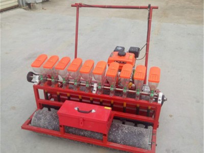 蔬菜精播机工作原理是:在通过本机排种控制系统对下种数量的精密控制,播种时按量定距,将种子相对有规律的单粒排放在出苗环境较好的土层。使出苗株距自然合理,减省了人工蹲下间苗的劳苦环节 播种效率是人工播种的15倍以上。每亩节约间苗投工4—5天。大面积种植每亩节省人工间苗费400—500元。并因单株出苗粗壮每亩增产10—20﹪。 集“省工、省种、省时、省力、省墒、保墒、节肥、省水、苗匀、苗齐、苗全、苗壮、质优、增产”于一体。是目前全世界的谷物、蔬菜、苜蓿牧草、中药材、草坪等小粒种子“出苗质量好”的播种机。 种植谷子四大要领;细整地, 散施肥 ,深开沟 浅覆土。