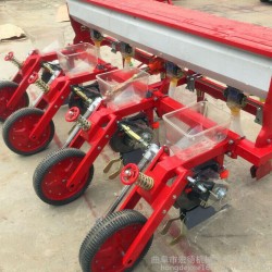 该机与拖拉机配套作业,主要用于免耕地单粒精播或双粒精播玉米,可条施晶粒状化肥,一次完成开沟施肥、开种沟、播种、覆土、镇压等项等工序,两行机添加铺镆机构可以完成地膜覆盖。