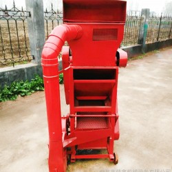 新款双辊花生剥壳机由机架、风扇、转子、单相电机、筛网(有大小2种)、入料斗、震动筛、三角带轮及其传动三角带等组成。机具正常运转后,将花生定量、均匀、连续地投入进料斗,花生在转子的反复打击、摩檫、碰撞作用下破碎,花生粒及破碎的花生壳在转子的旋转风压及打击下,通过一定孔径的筛网(花生次脱粒用大孔筛网,清选后的小皮果更换成小孔筛网进行第二次剥壳)过滤、分离。花生壳、粒在旋转风扇吹力的作用下,使重量轻的花生壳吹出机体外,重量较重的花生粒则通过震动筛筛选达到清选目的