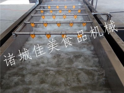 设备带有循环水泵和过滤水箱,实现清洗水循环使用,节约用水,根据实际生产情况补充更换新水。输送带电机,可实现调节变速功能,被清洗的蔬菜经过网链输送,自动送料,自动出料,根据生产需要调节输送带输送程度。操作及维护简便,工作效率高,是**的食品清洗设备。