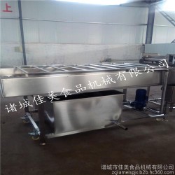 设备带有循环水泵和过滤水箱,实现清洗水循环使用,节约用水,根据实际生产情况补充更换新水。输送带电机,可实现调节变速功能,被清洗的蔬菜经过网链输送,自动送料,自动出料,根据生产需要调节输送带输送程度。操作及维护简便,工作效率高,是**的食品清洗设备。