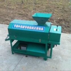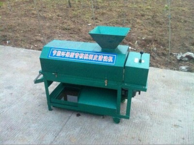 新型青核桃脱皮清洗机采用自由旋切剥皮,核桃进入旋切滚刀区,高速运转的滚刀开始切削青皮,核桃同时自由滚动使其各面被滚刀切削,脱净的核桃直径小不易被削到,不断的滚出旋切区,少量未削净的青皮被钢丝毛刷清除,干净的核桃滚出加工区,进入容器。新的核桃不断的喂入,剥净后被排出。隔栅和旋切滚刀之间的距离可以自动调节,还可以根据地区核桃的大小、青皮的薄厚通过加减垫片进行人工调整,以减少破壳率,提高脱净率。 三、新型青核桃剥皮机的产品
