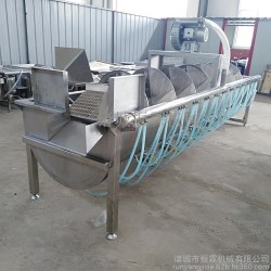 螺旋式鸡爪漂烫机,本款设备为“U”型漂烫箱体,一端进料(可以配置提升机上料),由大螺旋型齿对鸡爪进行推进,两侧设计蒸汽管道对产品进行漂烫处理,鸡爪漂烫完毕,由另一端输出,进入对接的卧式螺旋脱皮机,进行鸡爪脱皮处理。