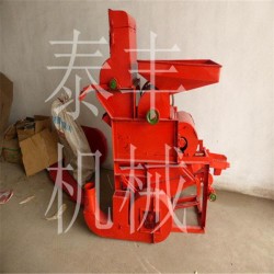 花生果由人工喂料送入喂料斗进入前滚筒里,利用纹板转动与弧度栅间的挤搓力将花生果的壳、仁剥离,剥离后的花生仁与壳同时经前弧形栅落下,通过风道时,由上风机风力将大部分花生壳吹出机外,而花生仁和一部分尚未剥离的花生小果一起落到比重选筛上进行分选,分选后的花生仁由分选晒面上行,经出仁口,流入麻袋。未剥的花生小果,则由分选晒面下行,经回料口流入提升装置,由风送提升装置送入后滚筒里二次剥壳,剥离后的仁和壳经后弧形栅落下,再次经上风机风选,比重分选筛精选,如此反复,即可实现全部剥壳。