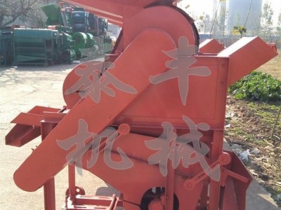 花生果由人工喂料送入喂料斗进入前滚筒里,利用纹板转动与弧度栅间的挤搓力将花生果的壳、仁剥离,剥离后的花生仁与壳同时经前弧形栅落下,通过风道时,由上风机风力将大部分花生壳吹出机外,而花生仁和一部分尚未剥离的花生小果一起落到比重选筛上进行分选,分选后的花生仁由分选晒面上行,经出仁口,流入麻袋。未剥的花生小果,则由分选晒面下行,经回料口流入提升装置,由风送提升装置送入后滚筒里二次剥壳,剥离后的仁和壳经后弧形栅落下,再次经上风机风选,比重分选筛精选,如此反复,即可实现全部剥壳。