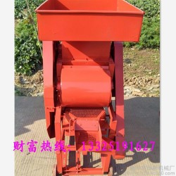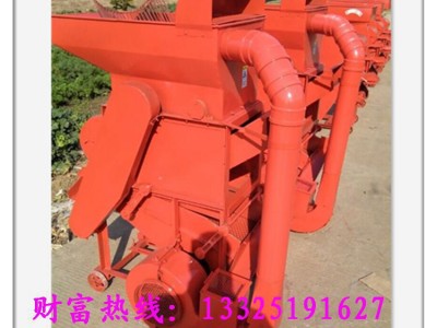 花生脱壳机有机架、风扇、转子、单相电机、筛网(有大小两种)、入料斗、震动筛、三角带轮及其传动三角带等组成。机具正常运转后,将花生定量、均匀、连续地投入进料斗,花生在转子的反复打击、摩擦、碰撞作用下,花生壳破碎。花生粒及破碎的花生壳在转子的旋转风压及打击下,通过一定孔径的筛网(花生**次脱粒用大孔筛网,清选后的小皮果更换成小孔筛网进行第二次脱壳),这时,花生壳、粒受到旋转风扇的吹力作用,重量轻的花生壳被吹出机体外,花生粒通过震动筛的筛选达到清选的目的。