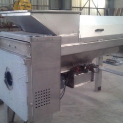 3、本产品均采用优质不锈钢制成,破碎装置位于除梗转筛下部,破碎辊为高弹性无毒橡胶制造,破碎装置与机体为快开方式联接。