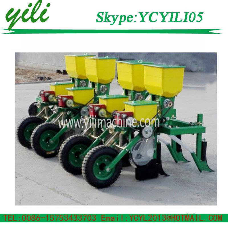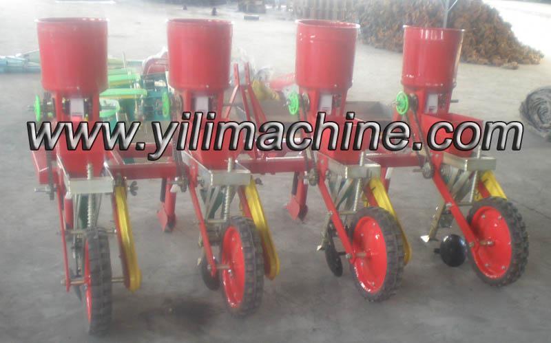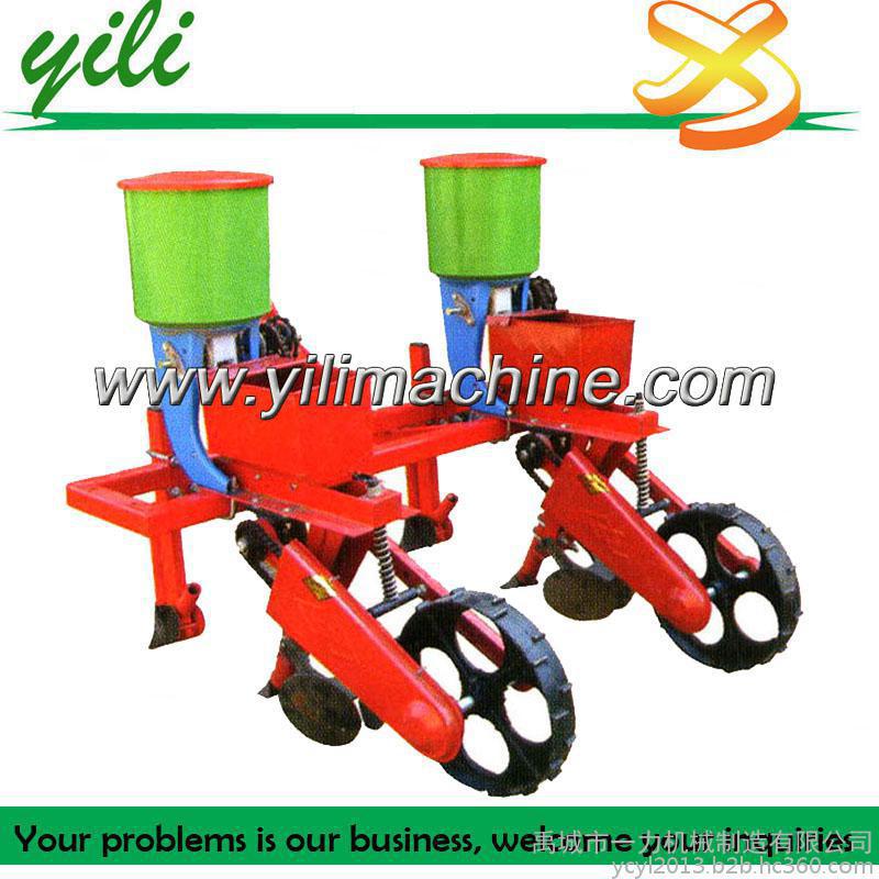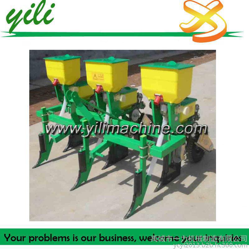 2BYFJ系列玉米,大豆单粒精密播种施肥机;一次可完成松土;施肥;开沟;播种;覆土;镇压全部过程。采用重力清种,不伤种子;清种精度高,播量均匀、稳定,省种、少间苗;采用“零速”、等势,低位投种,穴距**,苗剂,苗壮,苗距均匀;主播玉米,兼播大豆、棉花、花生、油葵,一机多用,播种同时,可同施基肥,同时实现覆土镇压。排种器由齿轮传动,主动齿轮内有防倒机构,避免机具倒转而引起故障;调整不同从动齿轮,可调株距;清种时可摘下整个排种盘盖,清种方便而彻底。该机在已耕地和未耕地均可适用。该机开沟窄,保墒好,化肥正施、侧施均可,配套范围广。