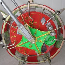 工作过程:由动力拖拉机输出轴输出,通过万向节总成、中间箱把动力传给刀盘轴,由于刀盘的高速铣削,泥土被铣削上来,有被**靠心力抛出而形成沟形,刀盘两侧装有一定角度的切土刀使沟形形成梯形。同时,通过排种传动装置带动排种轴转动,进行施肥播种,并利用旋耕抛出的土覆盖种子。一次作业,实现了旋耕、碎土、开沟、施肥、播种等多道工序。
