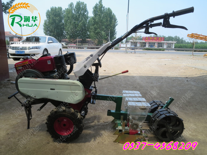 本产品具有高精密播种器,精度能做到一穴一粒和多粒(根据不同需要),株距/深度都是可按需求调节的。特点;简便,开沟、播种、覆土、镇压一次完成,可播种:胡萝卜、甜菜、韭菜、洋葱、芋头、菠菜、青笋、结球甘蓝、芦笋、落葵、生菜、芹菜、白菜、小白菜、葱、雪里红、油菜、辣椒、西兰花、油菜等各种小颗粒蔬菜和药材种子。