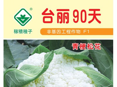 该品种由台湾引进,属晚熟品种,秋播约85-90天采收,植株强盛,根部发达,抗逆性强,容易栽培,成熟整齐,花球洁白,稍松,蕾茎稍长,呈淡绿色,品质柔软,甜脆味美,尤以炒食**可口,深受农友们及消费者喜爱,是目前**优良的品种之一,亩植