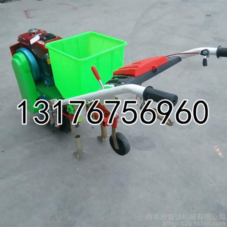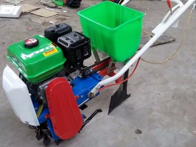 可以点播小麦、黄豆、红豆、豌豆、玉米、蚕豆等颗粒状种子。可以同时施肥、播种,下种量、下肥量、播种深度可以调节是旱田使用的小型机械。适用于所有旱田农作物垄间作业。是广大农民朋友实现农业机械化的**产品。 ?选配正规企业生产的变速箱,优质**汽油机为配套动力。易启动,轻便耐用。整体板设计,一次成型,坚固耐用。加粗手把。人性化的优质手油门设计。新款增添了高低空档挂挡离合功能独特的主轮设计不溜沟,扬尘少,减少向变速箱漏土及缠草。