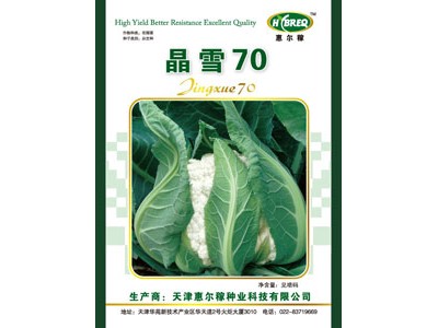 惠尔稼公司秋季中熟合抱新品种,定植后75天左右成熟,叶子深绿色,中内叶合抱覆盖花球,花球洁白无毛,花球极坚硬不易散球、植株生长强壮,抗病能力强。花球均重可达1.5公斤甚至更高,亩产4吨以上。