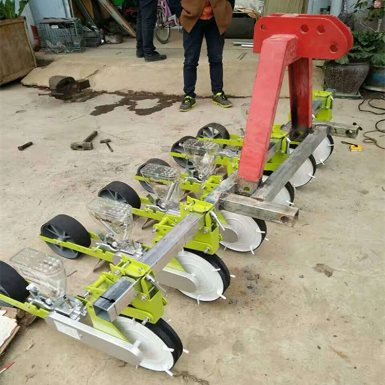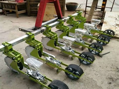 配件介绍种子箱(透明可随时确认种子数量】,种子箱盖可以测量种子大"单触式"种子箱拆卸,播种轮(根据种子大小与所需的株距可以选择合适的播种轮) 根据购买的行数我们只配相应行数的播种轮;例1行播种机1个播种轮3行播种机3个播种轮,以此类推,播种轮有圆孔型播种轮、十字花孔型播种轮、半圆孔型播种轮、长型孔播种轮等。选择播种轮的方法:可根据所需的种子大小、株距大小来选择合适的播种轮。