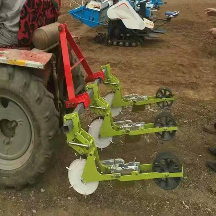 播种机优势:种子(行距、落种深度、落种数)可调控;开沟,落种,覆土,阵压一步完成;可以条播,可以点播。生产率:2.6km/h一天十个小时6-10亩