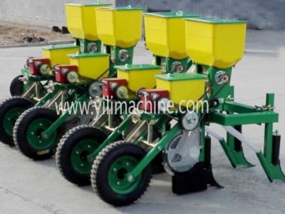 我公司生产的2BYFJ系列玉米专用精密单粒播种机是按照夏播地区农艺要求设计,该机排种器采用勺轮式排种方式(每勺一粒种子),低位投种,穴距**,苗齐、苗壮,苗距均匀,省时省工不用间苗。(更换不同从动齿轮,可调株距。变速箱式可直接调整株距)整排种器压铸铝件,强度高,重量轻,与