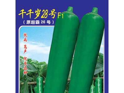 该品种引用韩国原种生产,中熟,深绿色,红熟果颜色鲜艳,粗长羊角型,果长22-28cm,粗3.5cm,单果重70g.空腔小,果皮坚硬,果型圆直且特光滑,辣味较浓,适应性较强,品质**,连续坐果能力特优,采收期长,挂果集中,整个采收期上下层果实整齐一致,耐热耐湿,高抗病毒病、炭疽病、疫病,是目前青皮尖椒类型中综合性状**优品种之一。
