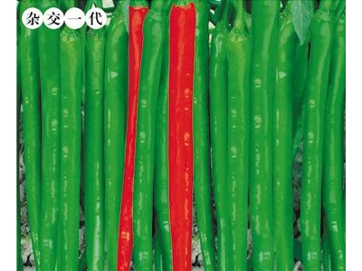 特征特性:高产型杂交线椒,熟性早,果长29厘米左右,果宽1.7厘米左右,单果重约28克,果长,光直,均匀一致,青果嫩绿色,光泽度好,口感清脆,味辣,品质好,坐果率高,耐热、耐湿、易种植,抗病强,特高产,春秋兼用。