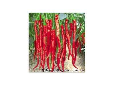 **选育的陕西线椒品种,早熟性突出,适合一次性采收。株高约75厘米,株形紧凑,生长势强。二杈状分枝,基生侧枝3~5个。果实簇生,长指形、深红色、有光泽,果长