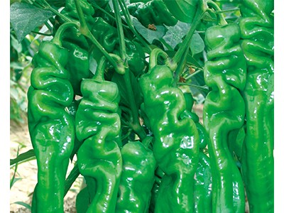 早中熟,一代杂交猪大肠,叶片小,抗病,大果型,绿色,辣味浓香。果长28-35cm,宽4.5-5.5cm,单果重100-