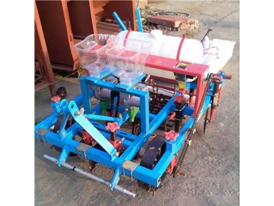 我公司**产品玉米喷药播种覆膜机可单体作业也可联合作业,单体作业,主要是直接挂接于拖拉机上在耕整的土地上作业。联合作业通过动力输出轴带动刀轴旋耕,在由后覆膜播种机完成起垄、施肥、蓄水、播种、伏土、镇压、覆膜、膜上镇压土等。节水地膜覆盖栽培技术是一项见效快,经济效益高的科学栽培技术,它可以提高耕作层土壤的温度改善耕作层的微气候状况,使土壤的水分,养分和近地层的微气候状况,向有利于作物生育的方向变化,从而人为地控制作物的生长,增加水分减少水分蒸发,消除由于无霜期短春季干旱,低温等不利因素对作物的影响使某些农作物、经济作物、蔬菜和粮油作物提前成熟,改进品质提高产量,减少劳动强度提高工作效率,确保农业的增产增收。