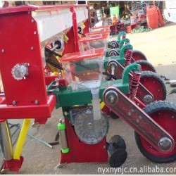5. 各行传动轴连成一体,统一驱动,转速一至,传动动力大,即使其中一行的地轮偶然打滑,也不影响该行正常播种。