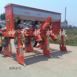 该机与拖拉机配套作业,主要用于免耕地单粒精播或双粒精播玉米,可条施晶粒状化肥,一次完成开沟施肥、开种沟、播种、覆土、镇压等项等工序,两行机添加铺镆机构可以完成地膜覆盖。