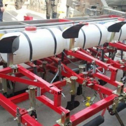 该机可与40-80马力四轮拖拉机配套使用,具有结构紧凑、机动性好、布局合理、工作平稳、适应性强、维修简单等特点,可根据不同地区的农艺种植要求,调整深浅、行距和株距。集开沟,施肥,播种,起垄,刮平,覆膜,喷药于一体。在需起垄种植的地区,可根据农户的需要起垄种植.根据拖拉机的功率大小,搞多组组合。生产效率每小时8-12亩,可一次性完成开沟、施肥、播种、覆膜,喷药,覆土作业。