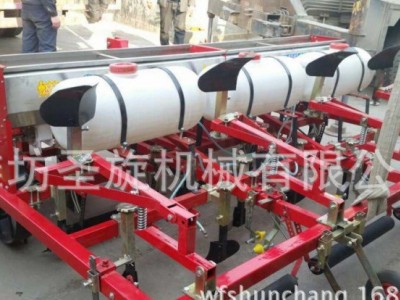 这是一款多功能花生播种机,是与>30马力拖拉机配套的三点悬挂式花生播种综合作业机械。该机可一次完成起垄、施肥、喷药、覆膜作业,简化了劳动程序,提高了作业效率,该记得起垄宽度、起垄高度、播种深度机覆膜宽度均可调,用户可根据不同地气、不同土质、不同作业要求进行相应调整,使该机的适应性广。该机采用内充含土式排种器,播种作业时,可根据种子尺寸的大小,根据不同地区要求,相应调整播种量。该机设计紧凑、配置合理、功能齐全、挂结快捷,易于操作,是一种比较理想的花生播种机械。