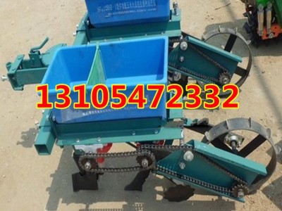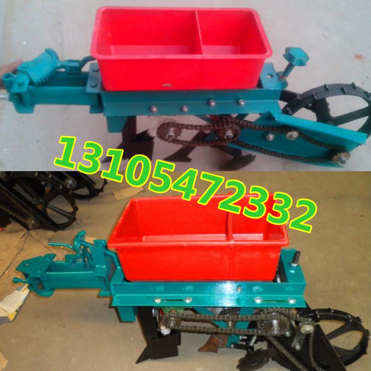 本实用新型公开了一种手扶拖拉机播种机,它由固定在机架上面的种子箱、排种轴、引种合和固定在机架下面的犁头及地轮组成。播种机与手扶拖拉机牵引座连为一体,随手把能灵活升降,具有结构简单,造价低廉,操作方便等优点,是配套手扶拖拉机的一种小型播种机。