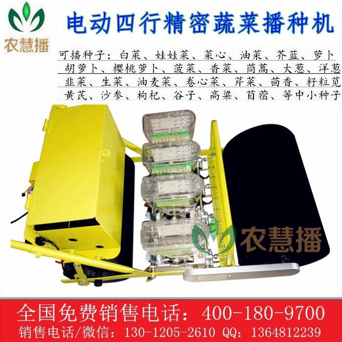 此款为电动型播种机,有1-4行4种规格,您可以根据需要选择,是精播机,播种后无需间苗,株距、行距、落种深度、落种数是可调节的