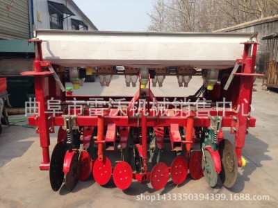 该机与拖拉机配套作业,主要用于免耕地单粒精播或双粒精播玉米,可条施晶粒状化肥,一次完成开沟施肥、开种沟、播种、覆土、镇压等项等工序,两行机添加铺镆机构可以完成地膜覆盖。