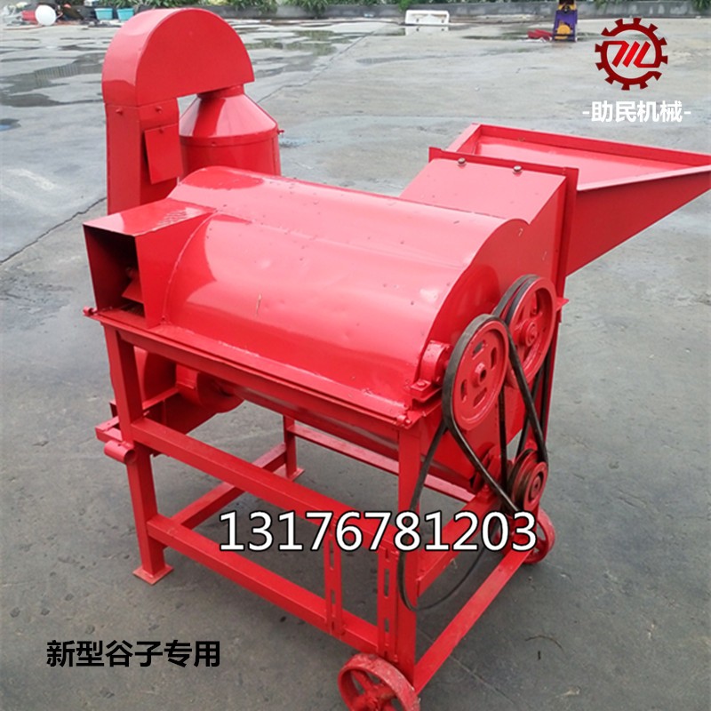 本产品是一种用于试验室中,农民个人、小型加工厂对水稻、小麦、大豆和其他谷物的单株、单穗脱粒的小型电动脱粒清选机。该机可将谷物脱粒并清选和分离,可方便的将罩盖打开检查并清扫残余物,无清扫死角,完全保证无混杂。该机具有脱粒方便、损失小;清扫容易、移动轻便等优点;该机表面经整体喷塑处理,耐腐蚀性强,可很好地满足对单株脱粒的要求。目前已在全国十几个省市农业科研院所实际应用。该设计先进、结构紧凑、选用优质结构钢材,采用轴流式滚筒脱粒技术和可调风量清选技术,对谷粒、谷糠、谷秕、谷草的清选分离,具有分离清、损失小、脱净率高的优点,是科学院所研究实验谷子的理想机具,是农户脱粒的好帮手。