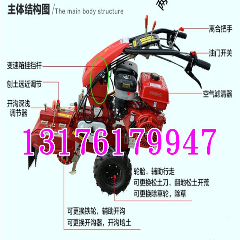 多功能田园管理机,全能型,可以实现多种田间作业,并且各功能**于国内同行业产品,安装上不同的配件可以开沟、起垄、培土、打药、播种、旋耕、松土、中耕、深耕、除草、施肥、喷药杀虫、铺地膜、抽水浇地、开荒、发电、开深沟、偏培土、埋葡萄藤、扶垄、田间运输等,与其他少功能的田园管理机是不同的。