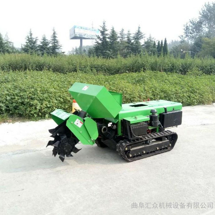 自走式多功能施肥机主要用于果园开沟施化肥和有机肥料、旋耕、喷药、除草、园区开沟排水作业。该机体积小,操作灵便,可原地转向,分离低6个前进档位和2个到退档位,在机器左侧手动操作;动力采用28马力时风单缸水冷柴油机,箱内全部为齿轮传动,结实耐用。行走采用橡胶履带,行走直线性和通过性好,不易打滑。开沟刀采用65锰钢自至,刀刃全部用耐磨焊条加强焊制;施肥采用蛟龙式强制排肥,下肥量可调,每米0~
