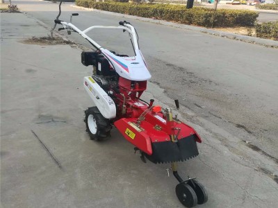 7 安全:以人为本设计理念,整机结构设计合理,机身钢材全部加厚,使用非常安全,省心。 8、马力大:7.5马力到10马力发动机,马力大、速度 快、效率高 9、操作方便:人性化设计,操作手把可上下调整高 度、360度旋转,适合任何环境下工作。 10、灵活性强:机器宽度**小是38厘米,高70厘米,长1.2米,重100-120公斤,小机器大作为。 11、适用性强:可在山地,丘陵、平原、旱田、大棚、果园、葡萄园及狭窄地作业,省心。 12、适合作物:适合大葱、大姜、草莓、甘蔗、辣椒、土豆、烟草、药材等作物的开沟、培土。