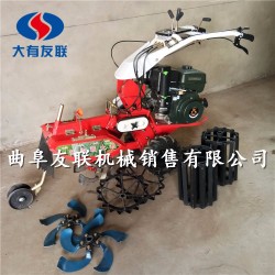 本机可以配的农具有:起垄机,播种机,翻转犁,旋耕刀,水田刀,除草轮,开沟器等。是进入农民家庭**的田园管理机。