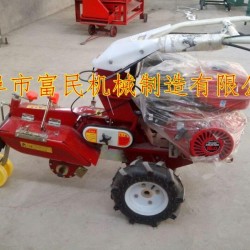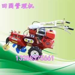 本机器包括机架、可调高低扶手,机架上设有(风冷或水冷)柴油机或汽油机、机架和扶手上设置有变速箱,变速箱的输出轴上设置有能够沿轴移动的驱动轮或链轨.传动方式主要有:全齿轮传动、皮带传动、链条传动三种传动方式.该机具有重量轻,油耗低、相对功率大,结构紧凑、机动性强、操纵轻便灵活的特点。可爬坡、越埂、阶梯性强。广泛适用于平原、山区、丘陵的旱地、水田、果园、菜地、烟地的深旋耕、浅旋耕、犁耕。配上相应机具可进行旱地旋耕、水田旋耕、抽水、开沟、喷淋、喷药除草碎土等作业,还可牵引拖车进行短途运输,是大中型农机无法媲美的多功能田园管理机,工作稳定可靠、使用寿命长、维修方便等特点。是进入农民家庭**的田园管理机。