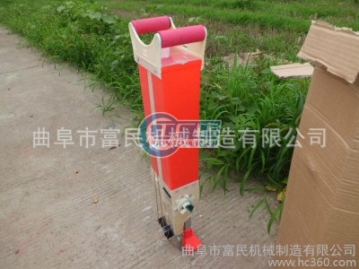 手提自动播种器,既适合平原地区使用,亦适合种子繁育区,更适合山坡耕地使用。该器自动插播精种,不破坏墒情,深浅一致,比刨坑和马拉机播种出苗早、出苗齐、出苗全、出苗壮,适合于玉米、大豆等穴播农作物的播种。降低了劳动强度,播种速度快,使用更轻松,一人操作每天可播种4-7亩左右。播种单粒效果更佳。可以点播小麦、黄豆、红豆、豌豆、玉米、玉米、棉花、西瓜、豆类.蚕豆等颗粒状种子。以同时施肥、播种,下种量、下肥量、播种深度可以调,是人工刨坑播种的3-5倍,不要油、不要电、纯人力机型,操作简单,几分钟就可以学会,可根据需要调整播种的颗数和施肥量,颗粒数从1粒到3粒,**大施肥量可达50克每次。深浅可调,涂肥均匀,深浅一致,出苗整齐,可提高肥料的利用率。另外,专门有一种尖的播种嘴,可适应免耕操作和硬地本机放弃了传统人工弯腰刨坑播种的辛苦模式,直接将化肥和种子一次性入土壤,种子和化肥隔开5公分,化肥还比种子深一公分,保证**不烧种。,而且施肥播种能够保持深浅一致,比传统刨坑播种具有出苗整齐、轻松高效的特点。