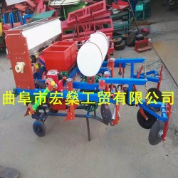 花生播种机为施肥播种喷药覆膜同时完成的机器,该机以其紧凑合理,功能齐全的结构将花生覆膜种植中的筑垄、播种、覆土、喷药、展膜、压膜、膜上筑土等农艺技术一次作业完成。地膜不仅能够提高地温、保水、保土、保肥提高肥效,而且还有灭草、防病虫、防旱抗涝、抑盐保苗、改进近地面光热条件,使产品卫生清洁等.此款机型有2行4行两种规格。