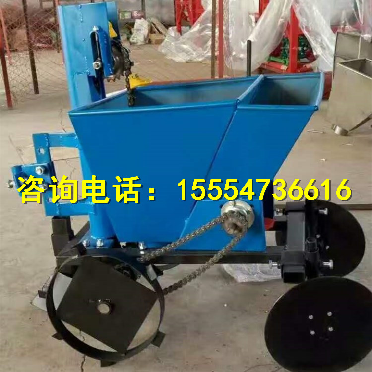 土豆播种机,又叫马铃薯播种机,番薯类种植机,是将块状的种子利用播种系统有序的种植在地下的一种种植机。马铃薯种植机可种植土豆等根茎类作物,并可同小型拖拉机配套使用,集开沟、施肥、播种和覆土为一体,可一次完成施肥、播种作业
