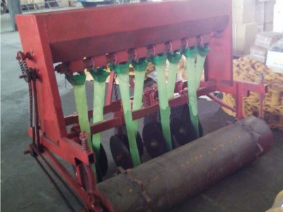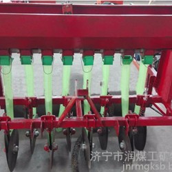 四轮车带大蒜播种机:适用于12马力及以上的四轮拖拉机,采用三点悬挂播种模式,播种行数为6行,大架宽度在1.2米,行距