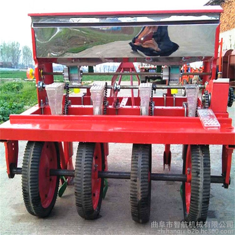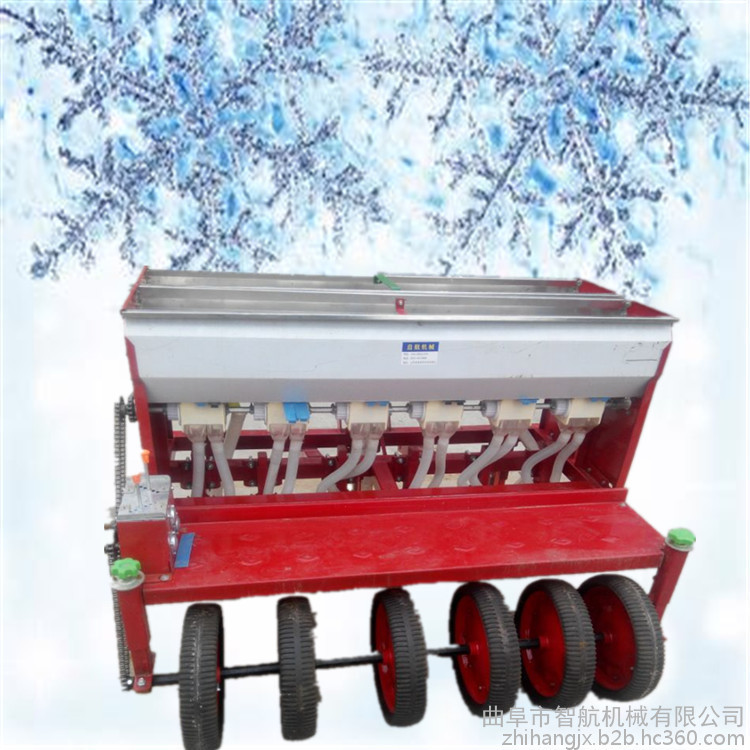本机其原理是:在通过本机排种控制系统对下种数量的精密控制,播种时按量定距,将种子相对有规律的单粒排放在出苗环境较好的土层。使出苗株距自然合理,减省了人工蹲下间苗的劳苦环节。播种效率是人工播种的