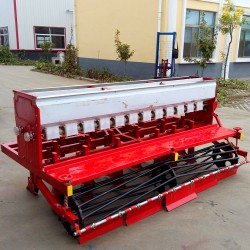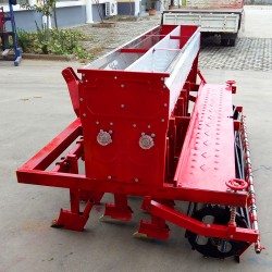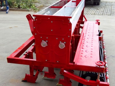 7行9行12行多功能播种机适用于平原和丘陵地区的条播小麦.玉米.大豆.谷子.牧草.白菜.油菜等小粒种子播种机12行多功能播种机与小四轮拖拉机配套使用,采用后置双轴三点悬挂,利用液压升降,排种装置由地轮驱动,使用方便。轻型双圆盘开沟器,能在桔杆还田的土壤中顺利开沟、播种在秸秆还田的地块中作业,还可将尖铲式开沟器换为圆盘开沟器。播种深浅可调,播量大小可调。杆式传动轴完全代替了链轮组构造,避免了掉链、折链的麻烦,更能及时准确地保证您的耕作顺利,使用寿命更长。12行多功能播种机一次作业可完成平地、开沟、播种、镇压、覆土、打竖等多项作业。圆盘开沟器采用弹簧浮动机构,可有效的避免因单盘受阻而整体漏播主机架采用加厚型方管,加强型设计,整体结构更加坚固、耐用。