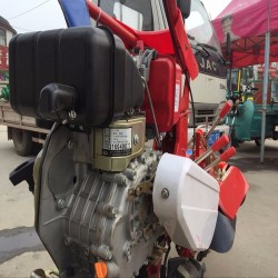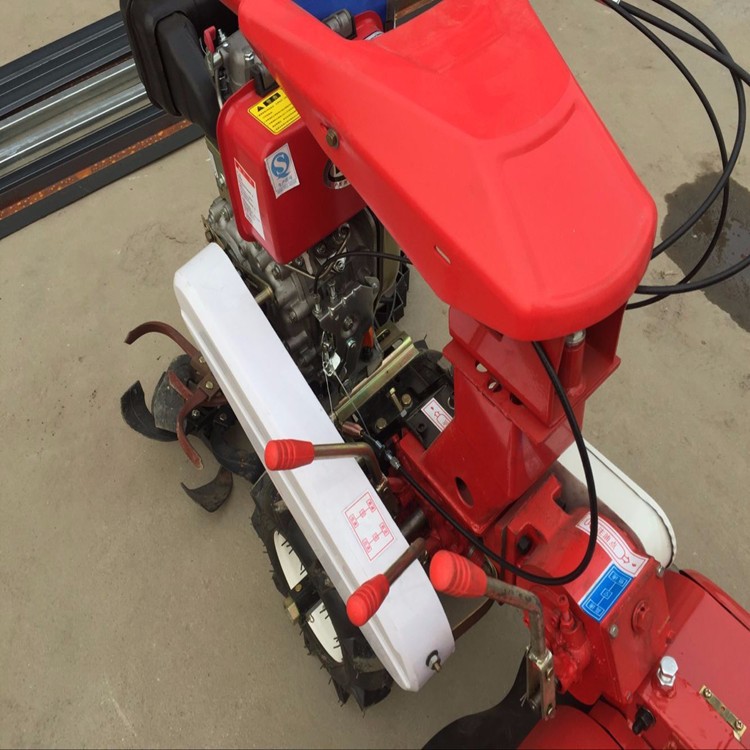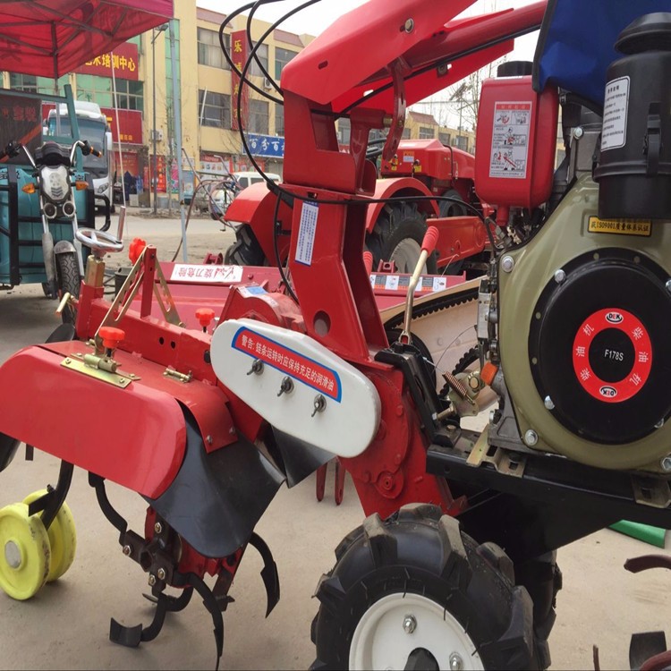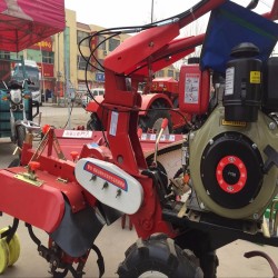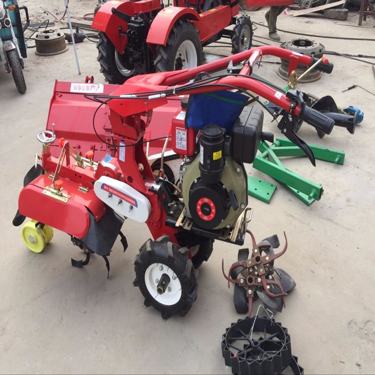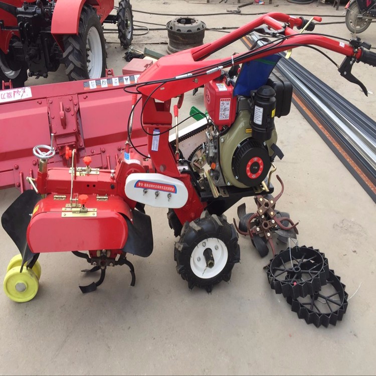 田园管理机包括机架、可调高低扶手,机架上设有(风冷或水冷)柴油机或汽油机、机架和扶手上设置有变速箱,变速箱的输出轴上设置有能够沿轴移动的驱动轮或链轨.传动方式主要有:全齿轮传动、皮带传动、链条传动三种传动方式.该机具有重量轻,油耗低、相对功率大,结构紧凑、机动性强、操纵轻便灵活的特点。可爬坡、越埂、阶梯性强。广泛适用于平原、山区、丘陵的旱地、水田、果园、菜地、烟地的深旋耕、浅旋耕、犁耕。配上相应机具可进行旱地旋耕、水田旋耕、抽水、开沟、喷淋、喷药除草碎土等作业,还可牵引拖车进行短途运输,是大中型农机无法媲美的多功能田园管理机,工作稳定可靠、使用寿命长、维修方便等特点。是进入农民家庭**的田园管理机。